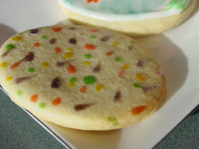 C) Instead of icing a cookie, drop dots of food coloring on the surface of a baked cookie. Then, using a straw, blow the food coloring across the top of the cookie. You’ll be a culinary Jackson Pollock.