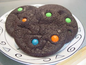 I love these cookies. They look so happy! And why wouldn’t a chewy cookie with a deep chocolate flavor and bright spots of color make people happy?