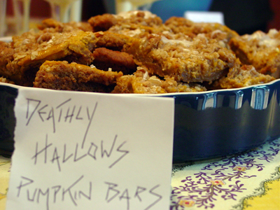 Before our Halloween/Dessert party, I asked the Daring Bakers for ideas. Peabody suggested I make Gingerbread Pumpkin Bars; she’d just made them with great success.