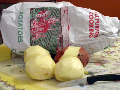 9:20 am: So far, so good, though I’ve only tackled the simple parts of this recipe so far. I’ve peeled, boiled, and mashed the potatoes, added in the reserved cooking water, and am now waiting for things to cool down before adding the yeast.
