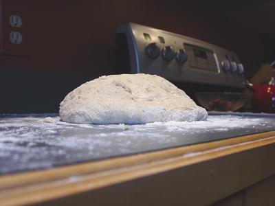 Turn the dough out onto a well-floured surface and knead gently several minutes. It will be moist and a little sticky.