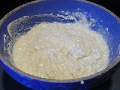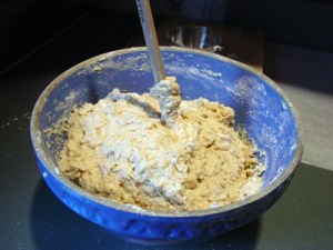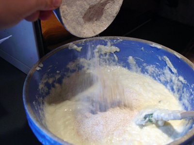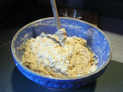Then mix in 2 cups of all-purpose flour and mix. Allow to rest several minutes.