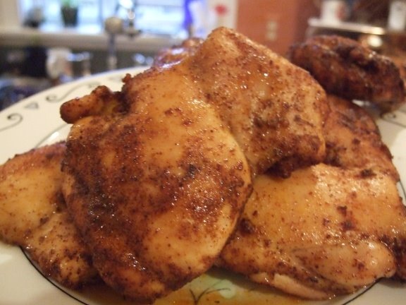 There’s not much of a narrative here, but suffice it to say (one hopes…) that this chicken is well-seasoned with a bit of a spicy kick, nicely complemented by a gentle sweetness. Plus, the chicken is incredibly moist and can be on the table in under 15 minutes.