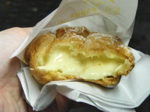 I did stop at Beard Papa, which wound up being a bit of a trip down sad-sack lane (and looking back, why did I get a stupid cream puff instead of a gourmet dessert at the Dessert Truck?). Beard Papa was nearing closing time and its employees were camped out at the door, selling hawking the day’s pastries to passers-by.