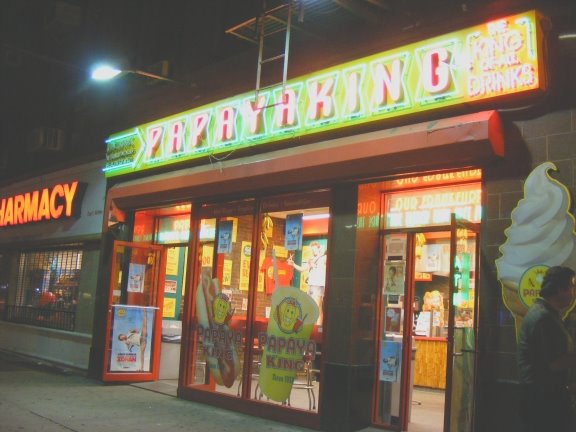Ohhh, Papaya King. How I love your snappy dogs and banana daiquiris! (I know everyone goes crazy for their eponymous papaya drink, but I’ve always preferred the banana.)