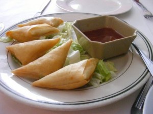 For lunch, my mom and I checked out the delicious Mingala Burmese. We started out with Golden Triangles: curried potatoes in a crispy shell served with a tangy sauce.