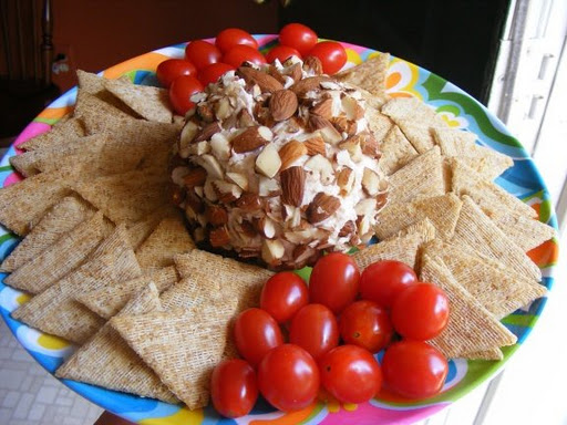 This recipe makes a GIANT cheeseball, so I separated it into two, smaller cheeseballs, both of which disappeared by the end of the evening.