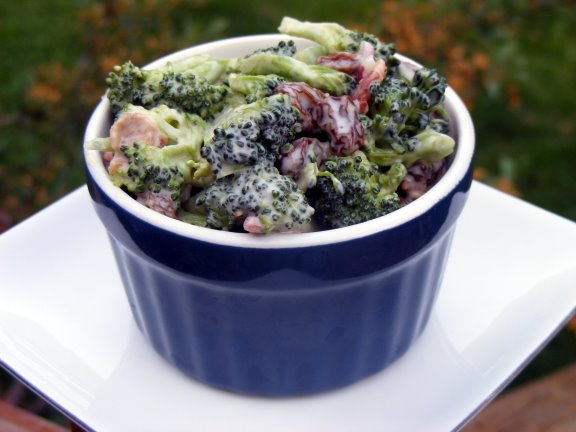 In a large bowl, combine bacon, broccoli, onion and raisins; set aside. In a small bowl, whisk together the vinegar, sugar and mayonnaise. Pour dressing over broccoli mixture and toss until well combined. Refrigerate for at least two hours. Serve chilled.