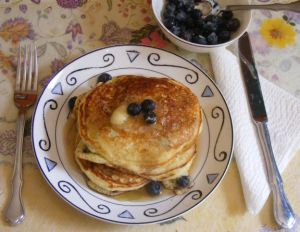 Blueberry Cornmeal Pancakes with Orange Maple Butter
