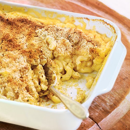 Spread add pasta/cheese mixture into prepared pan; top with bread crumb mixture.