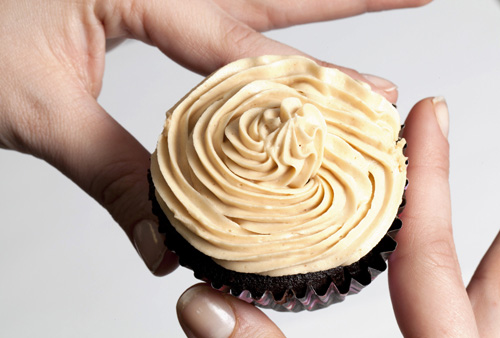 The frosting is my own concoction. It’s sweet, fluffy and peanut buttery, with a kiss of vanilla. I dare you to not lick the bowl when you’re finishing frosting your cupcakes (or, for that matter, during!)